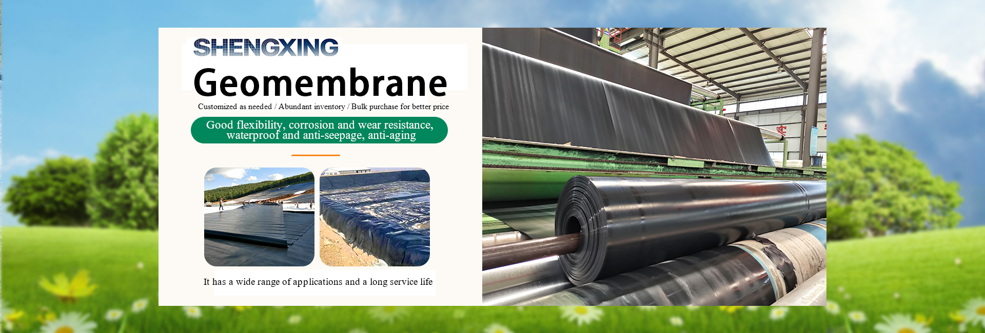 Shandong Shengxing Geotechnical Materials Co., Ltd. was established in 2019. The company mainly produces geotextiles, geomembranes, grass proof fabrics, cement blankets and other geotechnical products. The company has more than 80 geotextile production lines, more than 500 employees, and an annual turnover of 150 million yuan. The company has a 50 person R&D team and a 30 person testing center to ensure that every product leaving the factory has undergone qualified testing and meets the entry standards. At the same time, the company has passed the ISO9001 quality testing standard. The geotechnical materials produced by the company are exported to multiple countries and regions in Southeast Asia, Central Asia, Africa, etc. We have established long-term partnerships with 20000 material suppliers worldwide and welcome new and old customers from all over the world to visit and guide us.